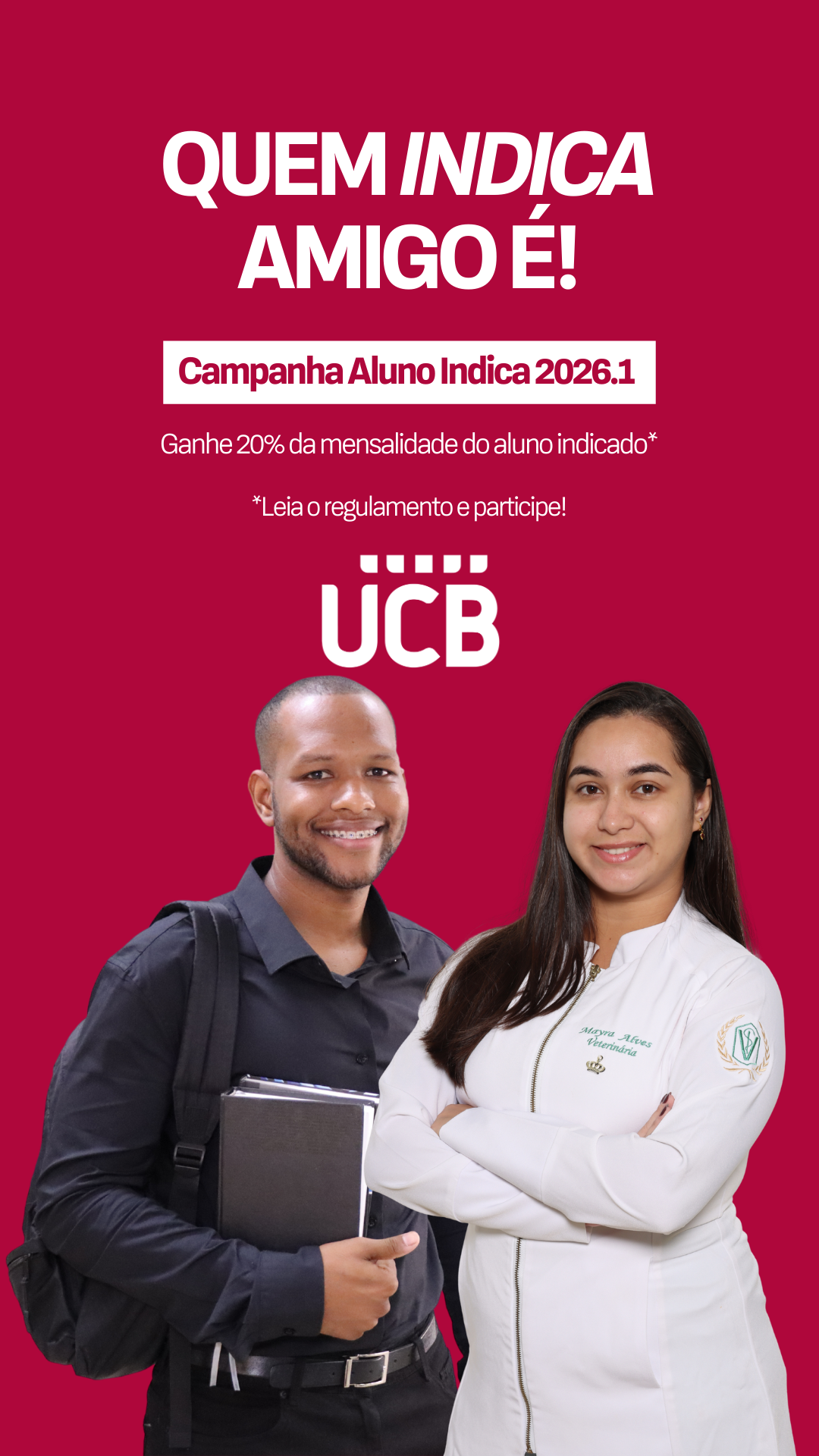“Aluno Indica UCB” é um programa que visa a captação de novos alunos nos Cursos de Graduação Presencial para o 1º semestre de 2026, por meio de Indicação de alunos regularmente matriculados na UCB.