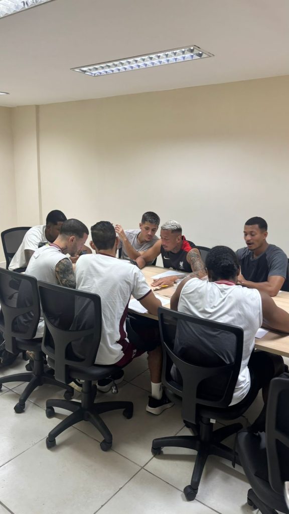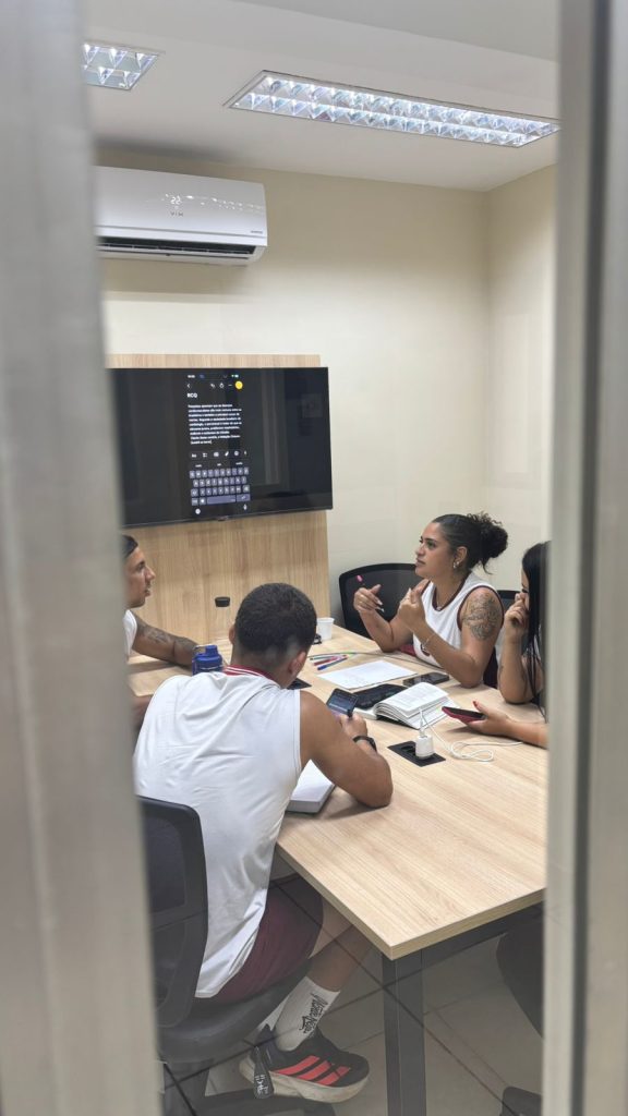 Durante a aula, os estudantes vivenciaram práticas relacionadas ao planejamento e à tomada de decisão em equipes, elementos fundamentais para a atuação do profissional de Educação Física em diferentes contextos, como academias, projetos esportivos e gestão de grupos.