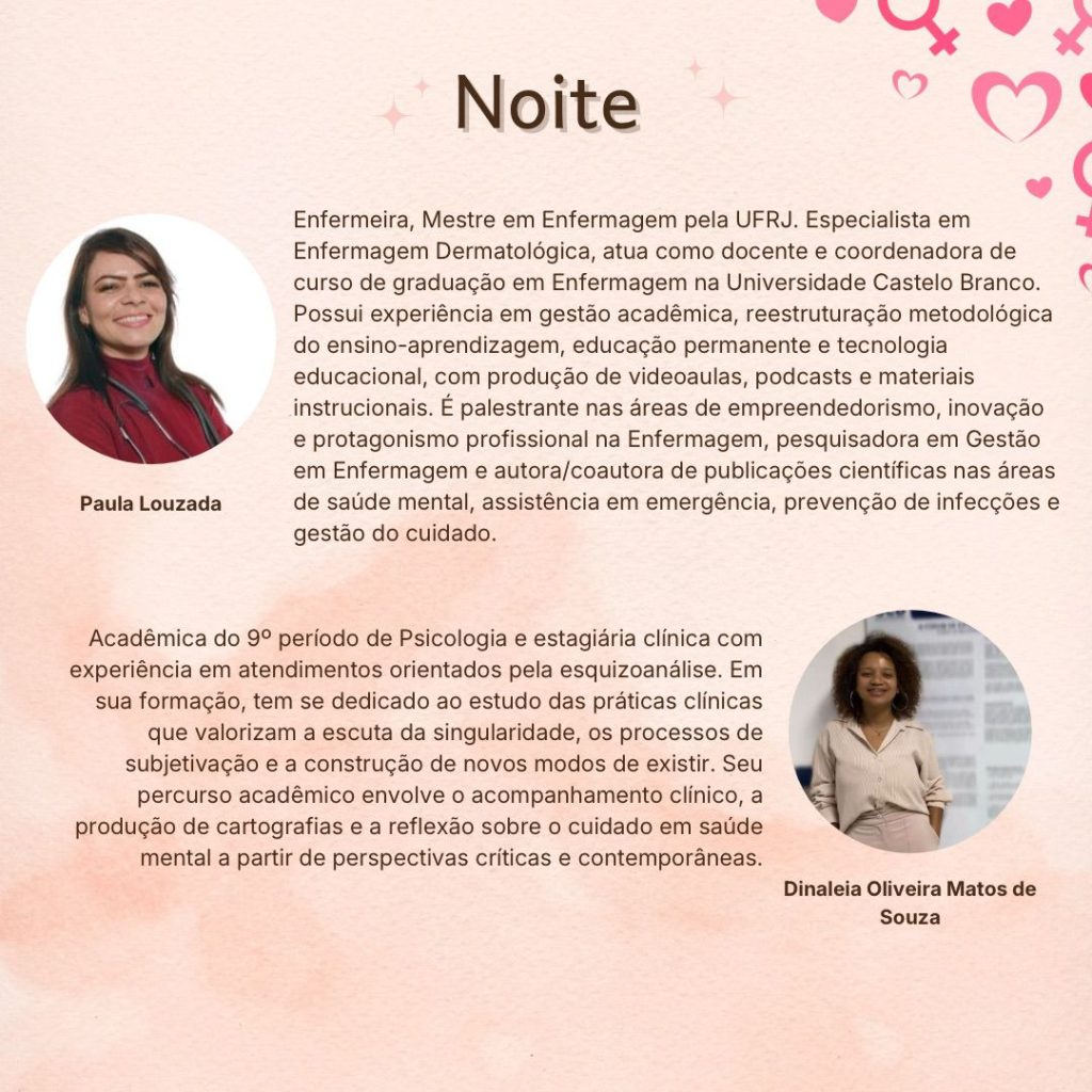 A organização começará no teatro 1 hora antes de cada evento (manhã e noite)
