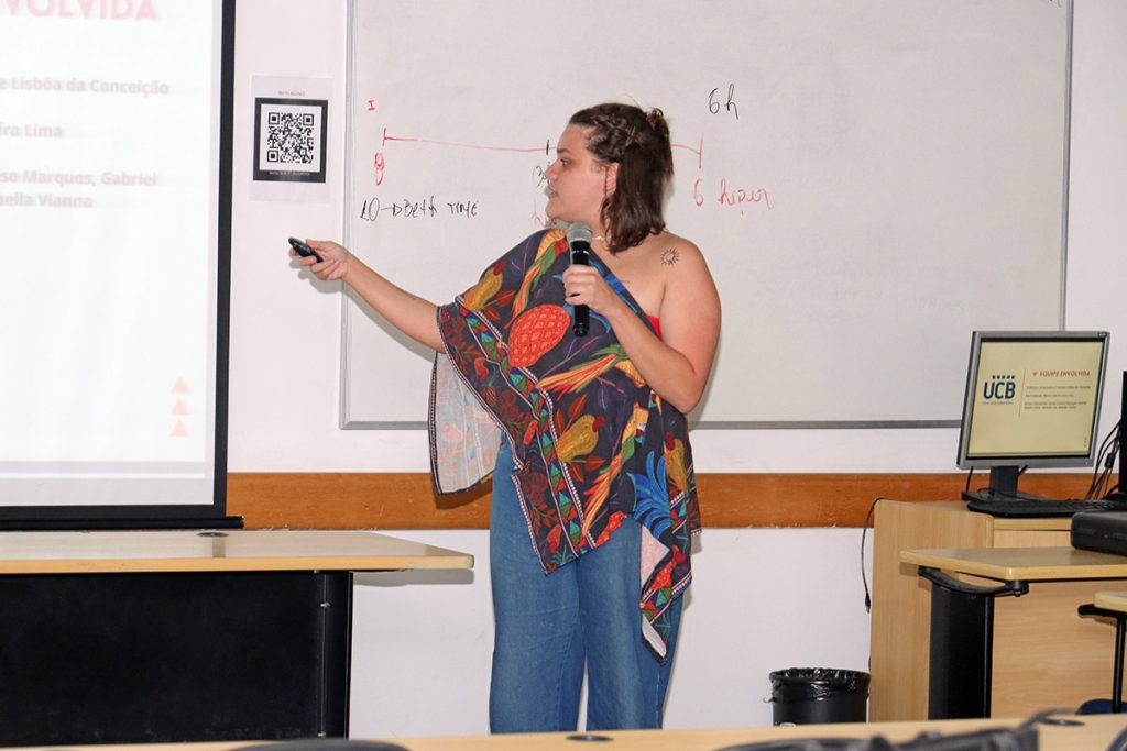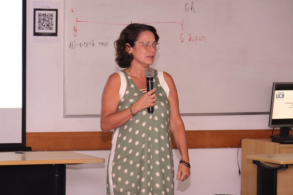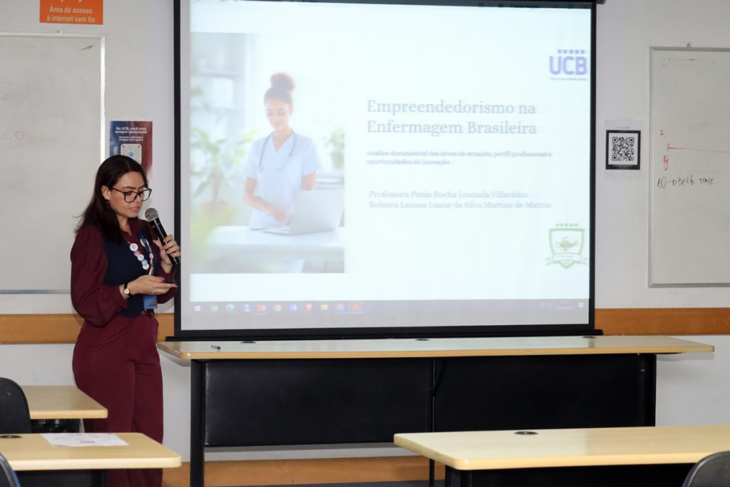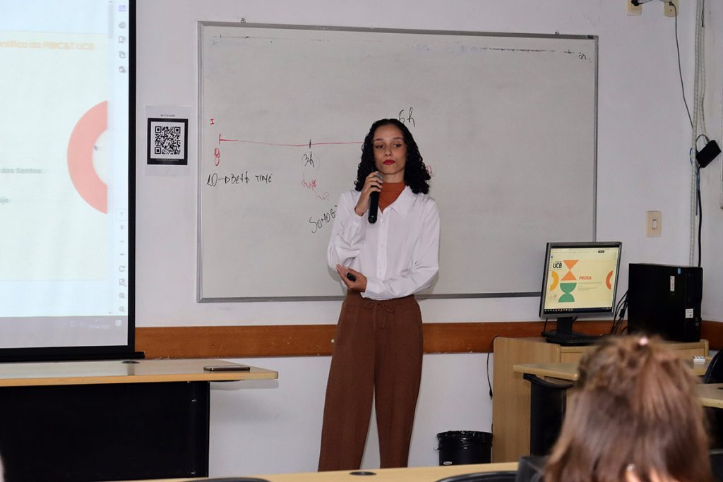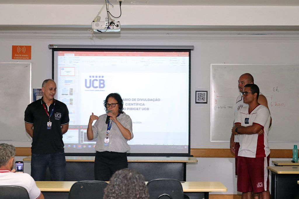 Professora Nádia Souza, responsável pela área de pesquisa da UCB, destacou a importância da iniciação científica na formação acadêmica. “O Programa Institucional de Iniciação Científica, o PIBIC, é fundamental na formação humana e profissional do aluno. Trata-se da inserção deles em atividades de pesquisa ainda na graduação, proporcionando uma experiência acadêmica e profissional”, afirmou.