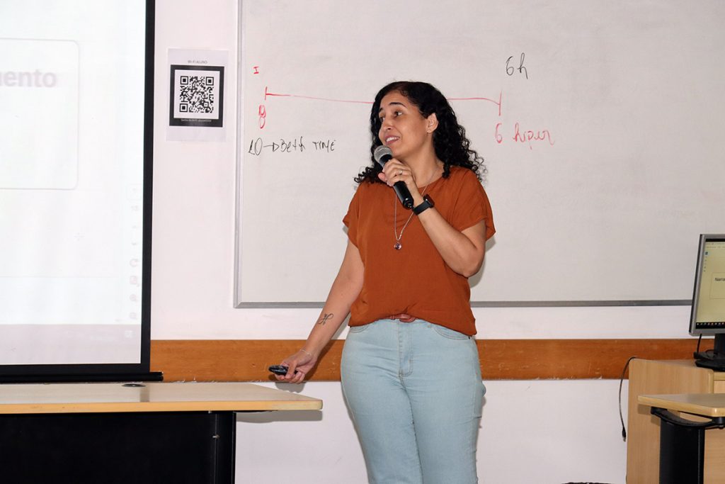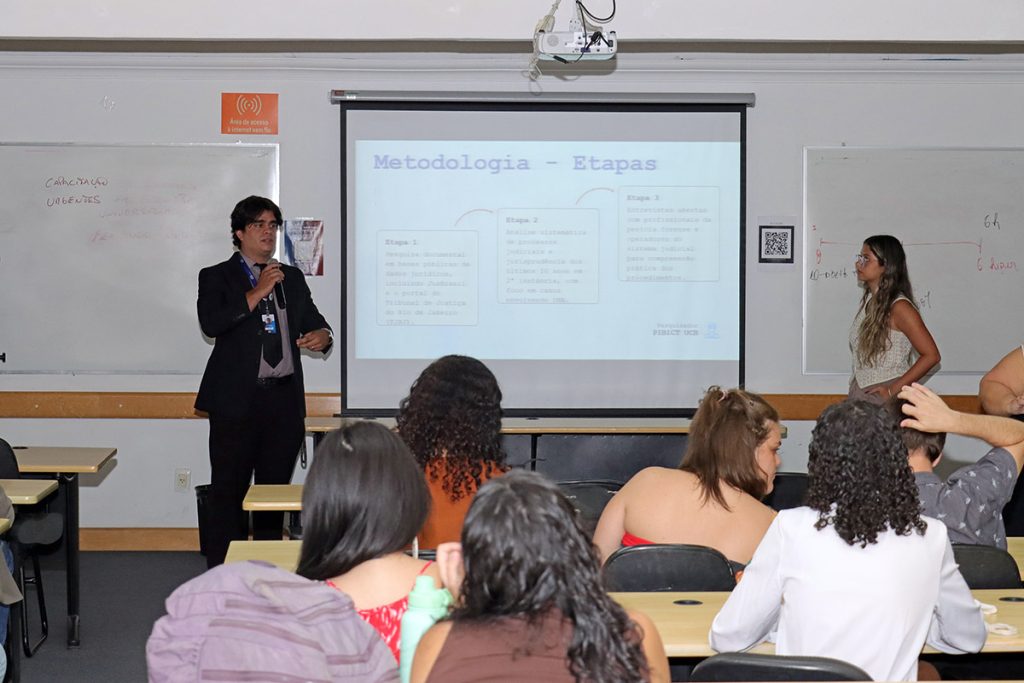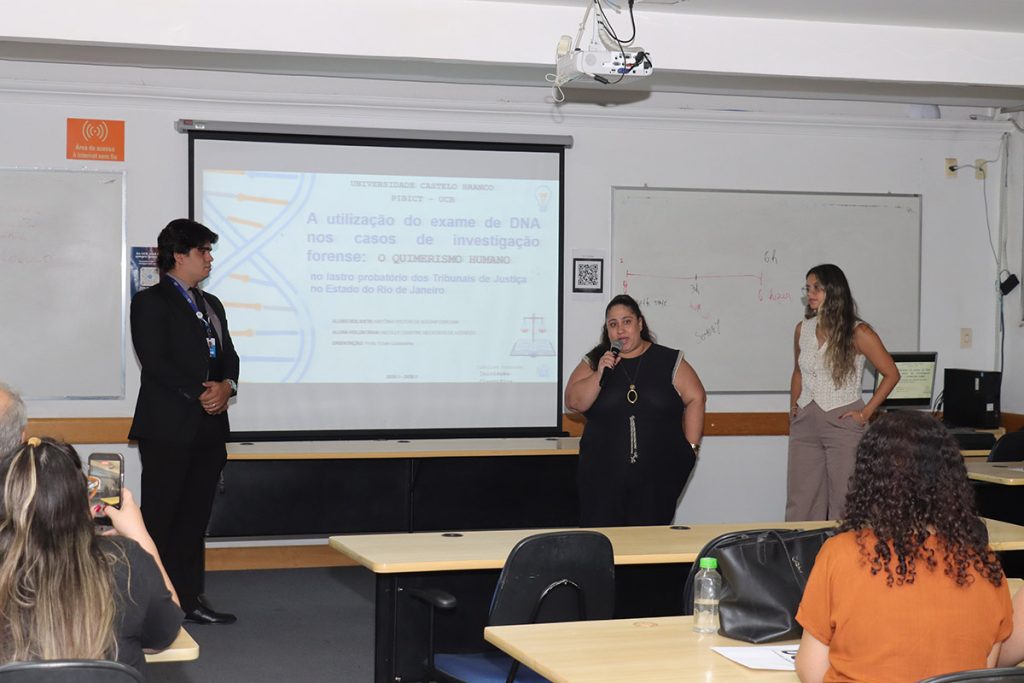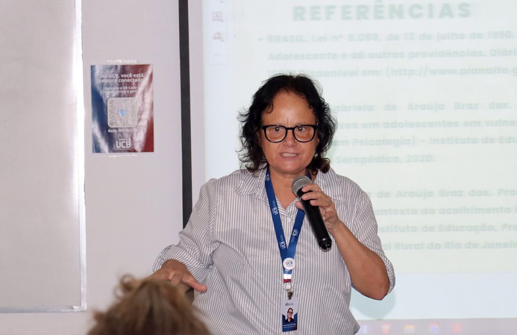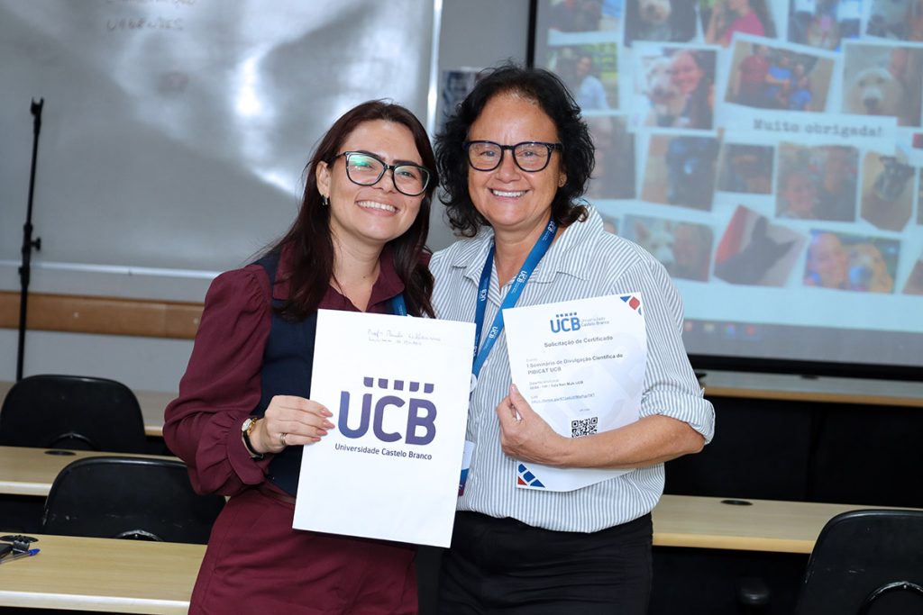 Professora Nádia Souza, responsável pela área de pesquisa da UCB, destacou a importância da iniciação científica na formação acadêmica. “O Programa Institucional de Iniciação Científica, o PIBIC, é fundamental na formação humana e profissional do aluno. Trata-se da inserção deles em atividades de pesquisa ainda na graduação, proporcionando uma experiência acadêmica e profissional”, afirmou.